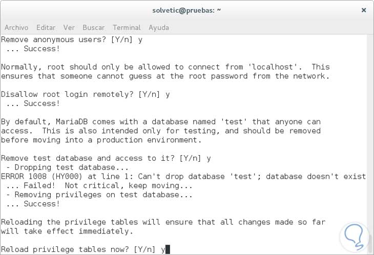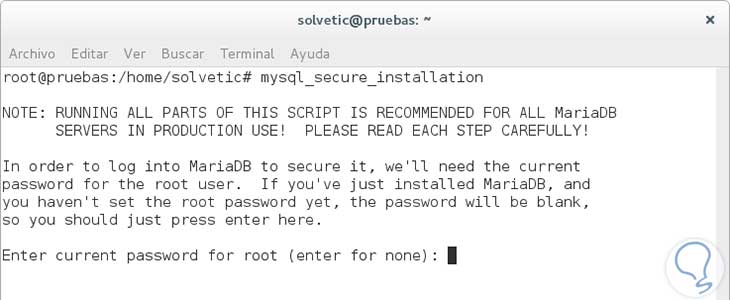 mysql_secure_installationVeremos que se despliega lo siguiente: