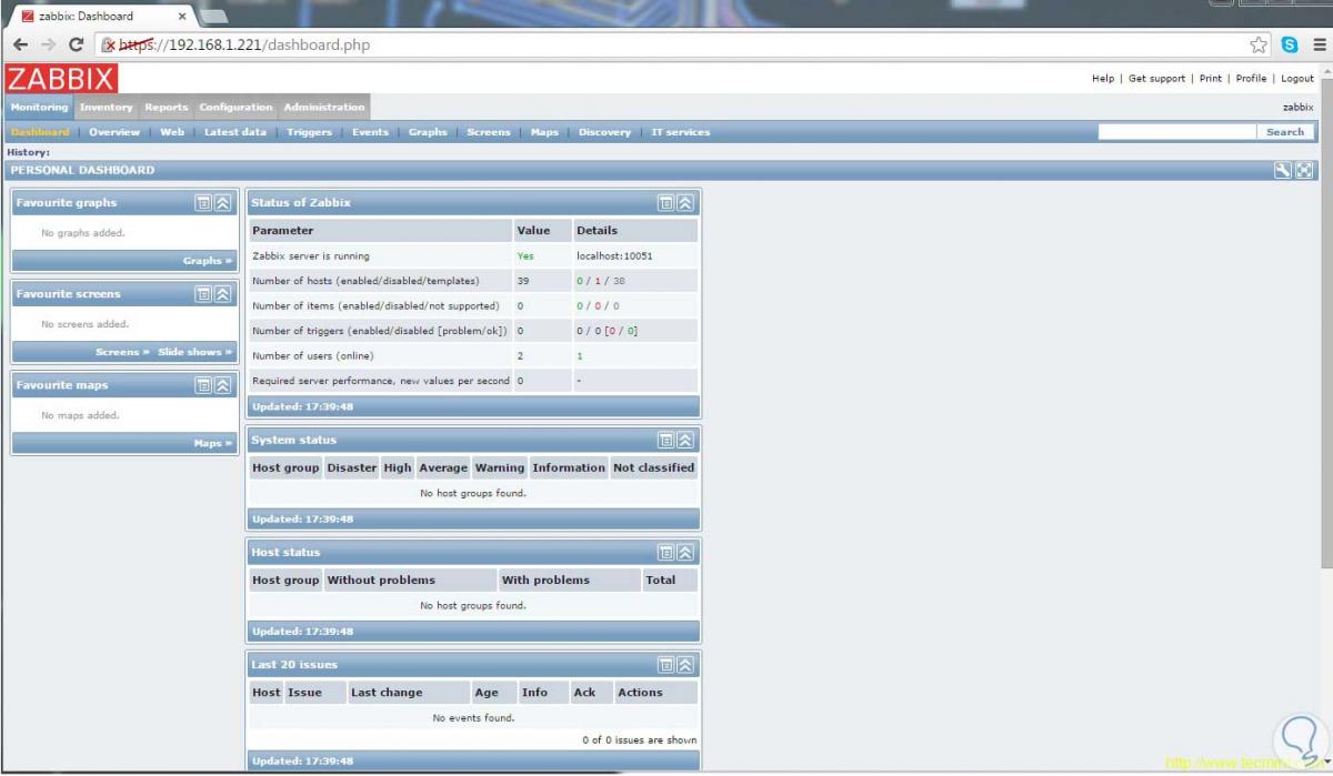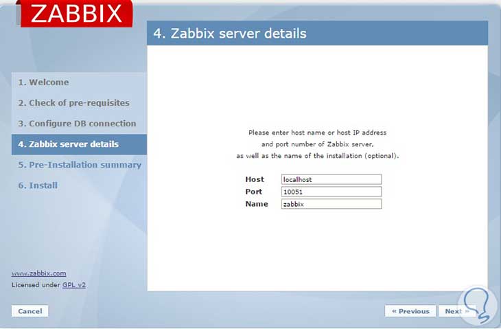 En la siguiente ventana podremos observar los detalles del servidor Zabbix.