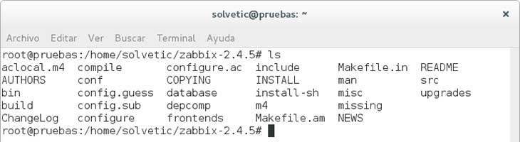 tar xfz zabbix-2.4.5.tar.gz cd zabbix-2.4.5/ lsPodemos ver lo que contiene dicha carpeta: