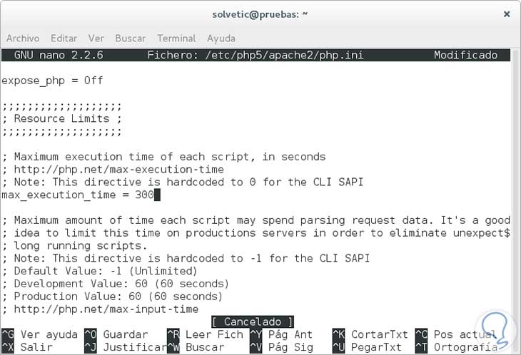A continuación debemos configurar algunos parámetros en el archivo php.ini; Para abrir este archivo ejecutaremos los siguientes comandos: