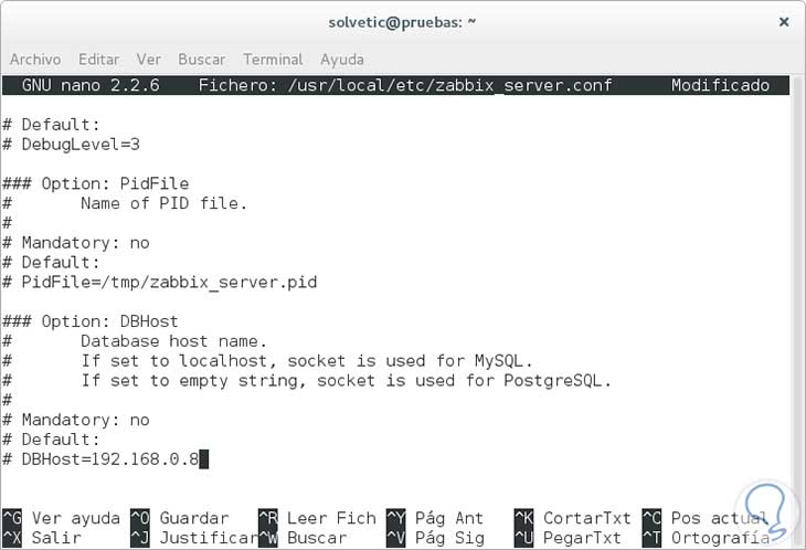 nano /usr/local/etc/zabbix_server.confVeremos que se despliega la siguiente información: