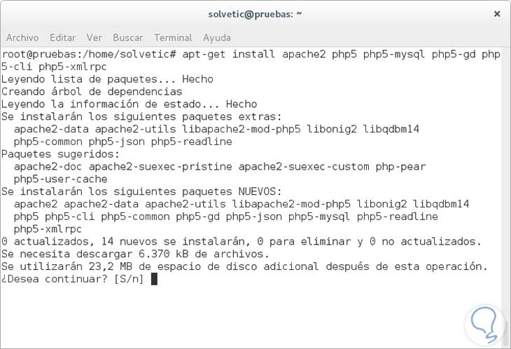 Vemos que se procederá a la descarga y respectiva instalación de los paquetes, aceptamos la descarga.