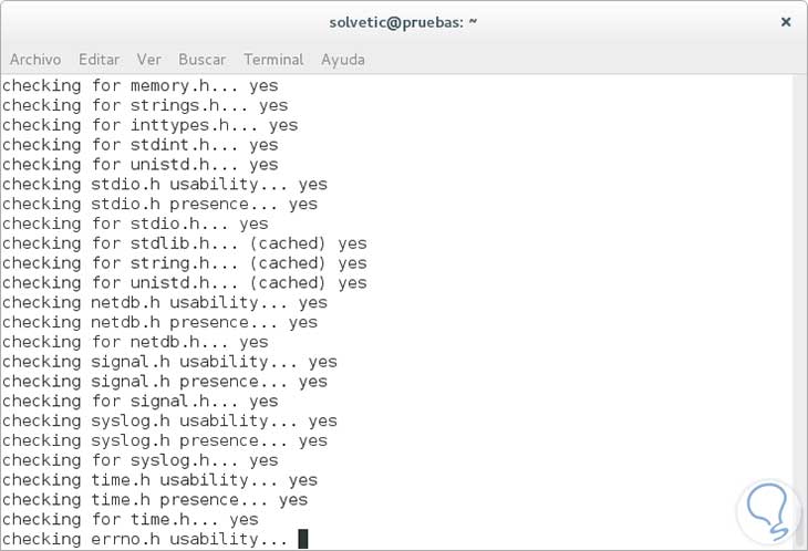 ./configure --enable-server --enable-agent --with-mysql --enable-ipv6 --with-net-snmp --with-libcurl --with-libxml2Ejecutamos el comando y comenzará todo el proceso de configuración.