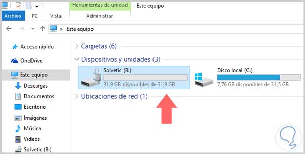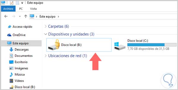 Es importante que reiniciemos nuestro Windows 10 para aplicar los cambios de BitLocker, podremos ver como la unidad B cambia de nuevo su apariencia.