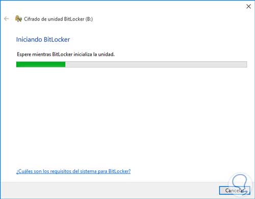 Podemos ver que se inicia el proceso de cifrado de BitLocker en nuestra unidad.