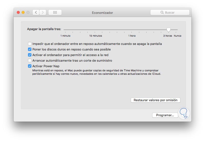 Es posible que queramos realizar una serie de configuraciones para que diferentes elementos del Mac entren en reposo en determinadas situaciones. En ese caso lo mejor es utilizar el economizador.