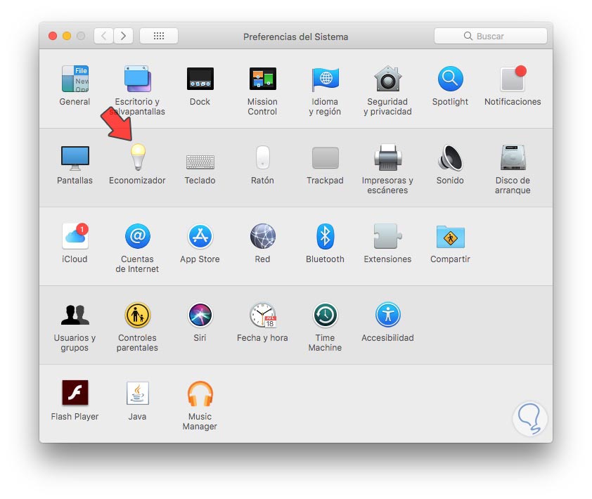 Lo primero que debes hacer es entrar en las "Preferencias del sistema" y seleccionar "Economizador"