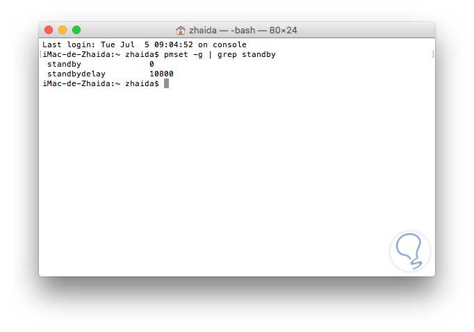 El número que aparece junto a “StandbyDelay” es el tiempo que el Mac espera ante de entrar de nuevo en el modo espera. Por ejemplo si vemos un valor de 10800 en la pantalla significa los segundos de espera. Esto se traduce en 180 minutos o 3 horas.
