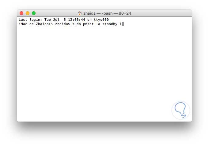 sudo pmset -a standby 0Para volver a habilitar el modo en espera después, tenemos que ejecutar el siguiente comando