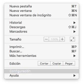 Lo primero que tenemos que hacer es acceder a Google Chrome. Una vez abierto el navegador, tenemos que dirigirnos al menú situado en la esquina superior derecha representado por tres rayitas. En este menú desplegable, tenemos que seleccionar “Configuración”.