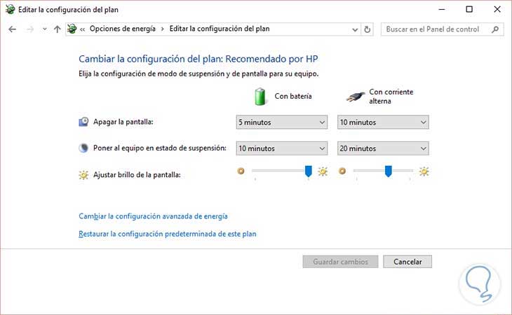Para ello pulsaremos en la opción Cambiar la configuración del plan y veremos la siguiente ventana: