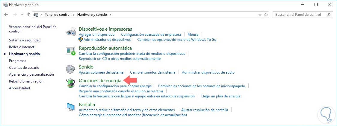 Para acceder a las opciones de energía podemos usar las siguientes opciones: