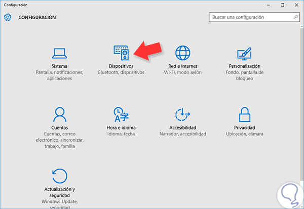 Ahora accede a la opción de Dispositivos dentro de esta ventana.