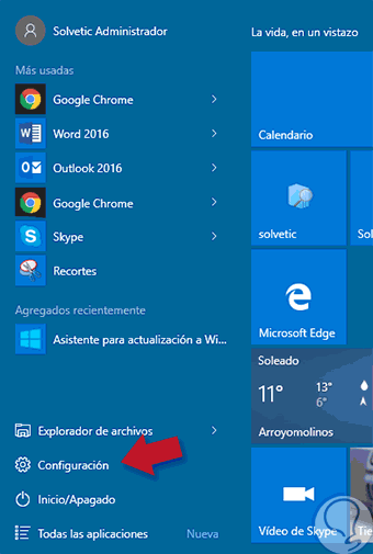 Para acceder a la configuración básica ve a menú Inicio y selecciona Configuración.