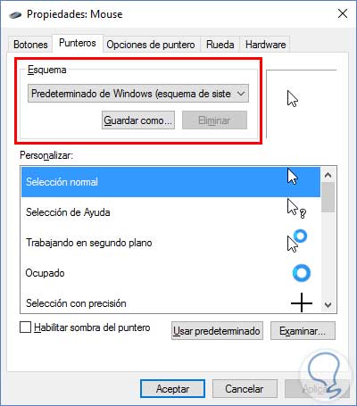 5. Cómo cambiar la apariencia del puntero en Windows 10