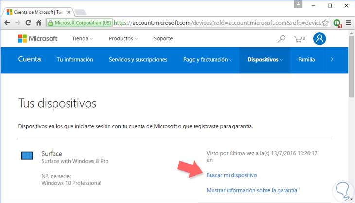Ya iniciada la sesión, verás que te aparecen los datos de tu ordenador y sólo tendrás que pulsar en Buscar mi dispositivo para que empiece a rastrear su localización.