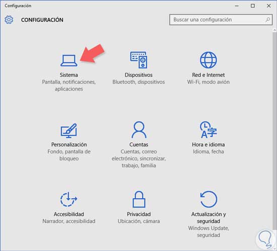 Ahora seleccionaremos de entre todas las opciones la de Sistema para acceder a su configuración.