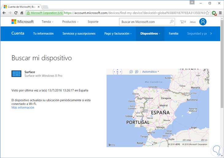 En la página final verás que se ha encontrado tu dispositivo con un mapa donde podrás localizarlo haciendo zoom en la imagen. Recuerda que tu ordenador debe estar conectado a Internet para que sea localizable y memorice Windows 10 tus ubicaciones.