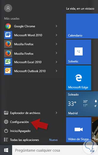 Lo primero que haremos será ir a nuestro Menú de Inicio de Windows 10
