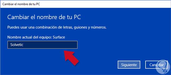 Ahora solo tendrás que introducir el nuevo nombre y seguir los pasos para cambiarlo.
