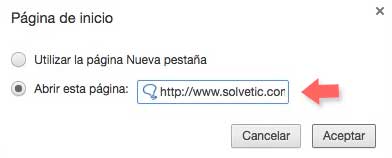 Una vez aquí tenemos que seleccionar “abrir esta página” y desde ahí podremos introducir la URL que queremos que sea nuestra web de inicio en el navegador.