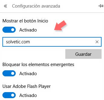 Posteriormente marcamos “mostrar el botón inicio” y una vez aquí ya podremos introducir la URL de nuestra página de inicio.
