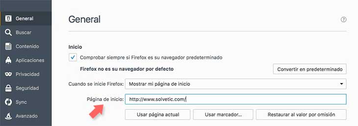 Restaurar página de inicio Firefox