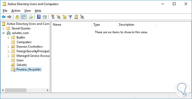 Finalmente hemos creado una OU llamada Pruebas_Respaldo para analizar el comportamiento.