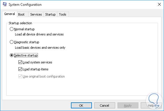Para que Windows Server Backup funcione de manera correcta es importante iniciar el sistema en Modo Seguro para que la herramienta acepte los cambios, de lo contrario puede generar error debido al Directorio Activo. Vamos a ingresar a la configuración del sistema a través del comando Ejecutar (Windows + R) e ingresamos el término msconfig. Se desplegará la siguiente ventana: