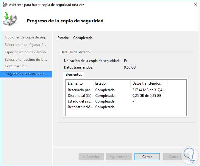 Pulsamos de nuevo Siguiente y veremos la confirmación del respaldo.
