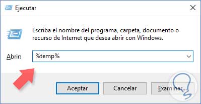 Ahora escribe el comando %temp% y presiona Enter para abrir la carpeta temporal del equipo con los archivos temporales.