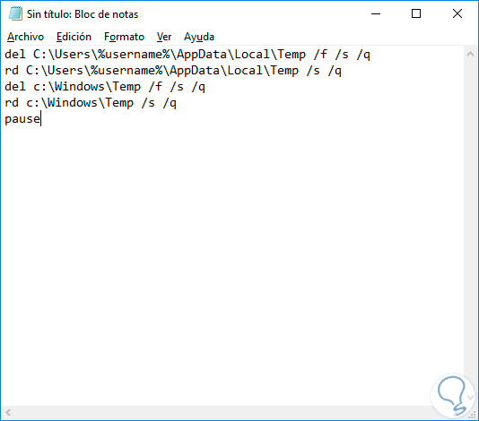 3. Eliminar archivos temporales con archivo bat en Windows 10