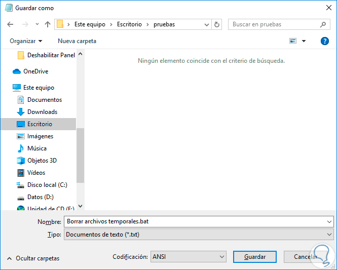 Guarda el archivo con el nombre que quieras manteniendo la extensión .bat