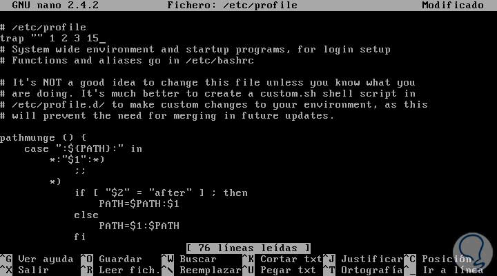 Ahora vamos a ir a la ruta /etc/profile y como usuarios root vamos a añadir el siguiente texto al inicio de la línea para evitar que el proceso sea interrumpido.