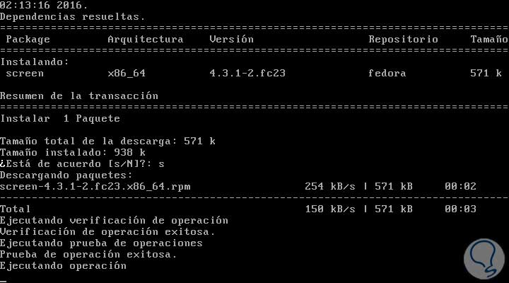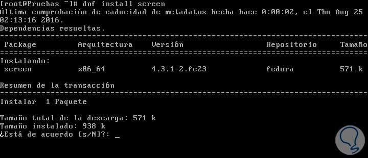 Allí aceptamos la descarga introduciendo la letra s (Sí). El proceso de descarga e instalación se ejecutará.