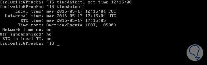 date –set HH:MM:SS, por ejemplo, date –set 13:20:25