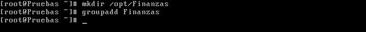 Supongamos que necesitamos crear un grupo para las personas de Finanzas, como usuarios root vamos a crear el directorio llamado Finanzas, para ello ejecutaremos el siguiente comando: