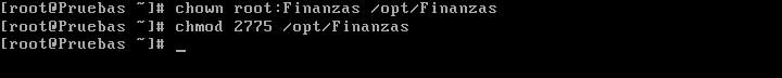 Vamos a asociar el contenido de la ruta /opt/Finanzas con el grupo Finanzas, usaremos el comando: