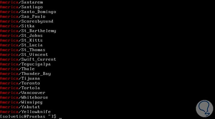 Se desplegará una amplia lista de zonas horarias, para establecer la que necesitamos simplemente deberemos ejecutar el siguiente comando: