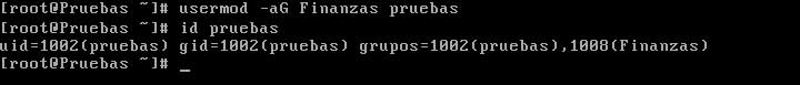 Finalmente para añadir usuarios al grupo Finanzas vamos a usar el siguiente comando: