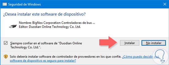 Cuando esté a punto de terminar el proceso de instalación se mostrará un mensaje relacionado al software y su fabricante, haz clic en Instalar.