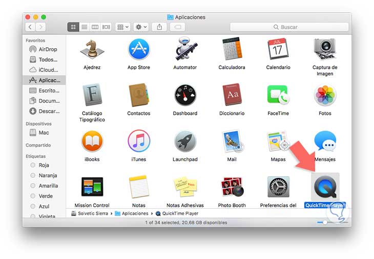 • En el menú Ir / Aplicaciones / QuickTime Player