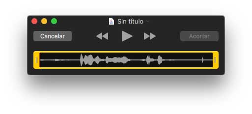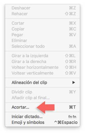 Para detener la grabación pulsamos nuevamente el botón central. Una vez tengamos la grabación vamos a ir al menú Edición y seleccionamos la opción Acortar o podemos usar la combinación de teclas Comando + T
