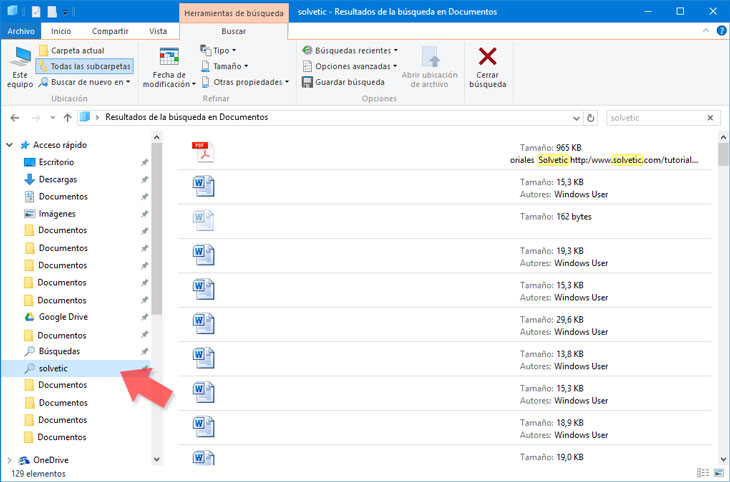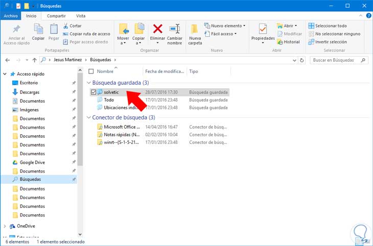 Si te fijas en la parte izquierda, tu carpeta de Búsquedas ya aparece en el acceso rápido para un uso más fácil.