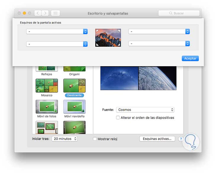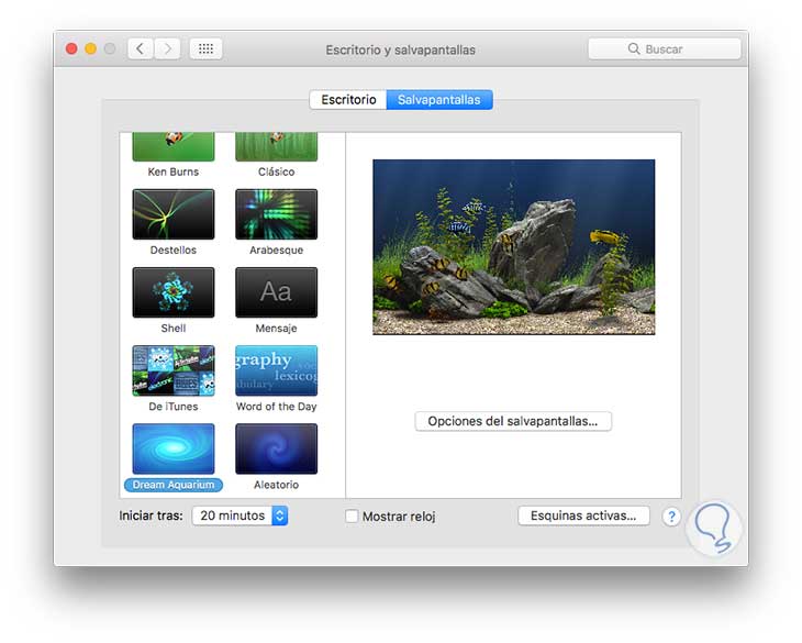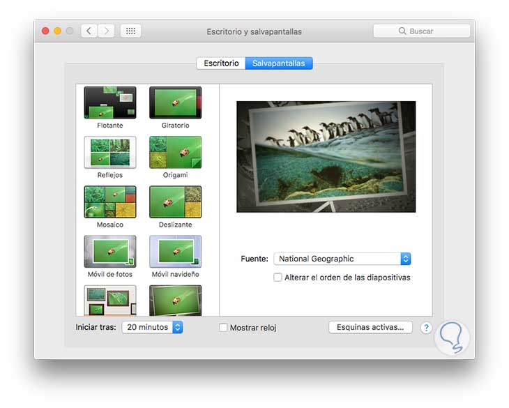3. Configuración de un protector de pantalla en macOS Sierra
