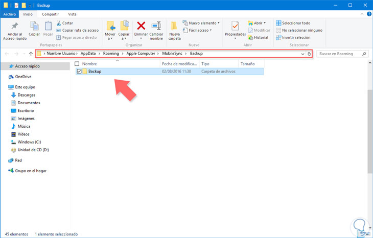 %appdata%Hacemos clic en las carpetas: Apple Computer – MobileSync – Backup