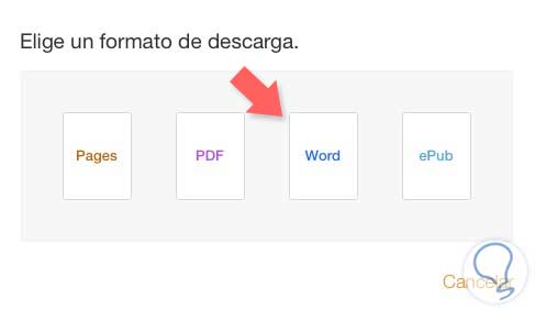 Ahora es el momento de que decidamos el tipo de formato al que queremos convertir el documento. En este caso vamos a seleccionar Word.