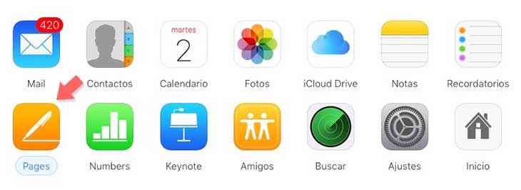 Una vez que tenemos nuestra cuenta creada, debemos acceder a la aplicación. Dentro de iCloud tenemos que seleccionar el icono de “Páginas”.