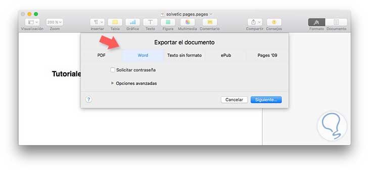 Una vez que hemos seleccionado esto, se va a abrir un dialogo que tendrá el título de “Exportar documento”. Como hemos podido observar, además de Word podemos exportarlo a otro tipo de formatos siempre y cuando queramos. Tenemos que seleccionar “Siguiente” si estamos de acuerdo con las opciones.