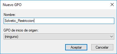 Al pulsar la opción indicada se despliega la siguiente ventana donde debemos asignar un nombre, en este caso elegimos "Solvetic_Restriccion".